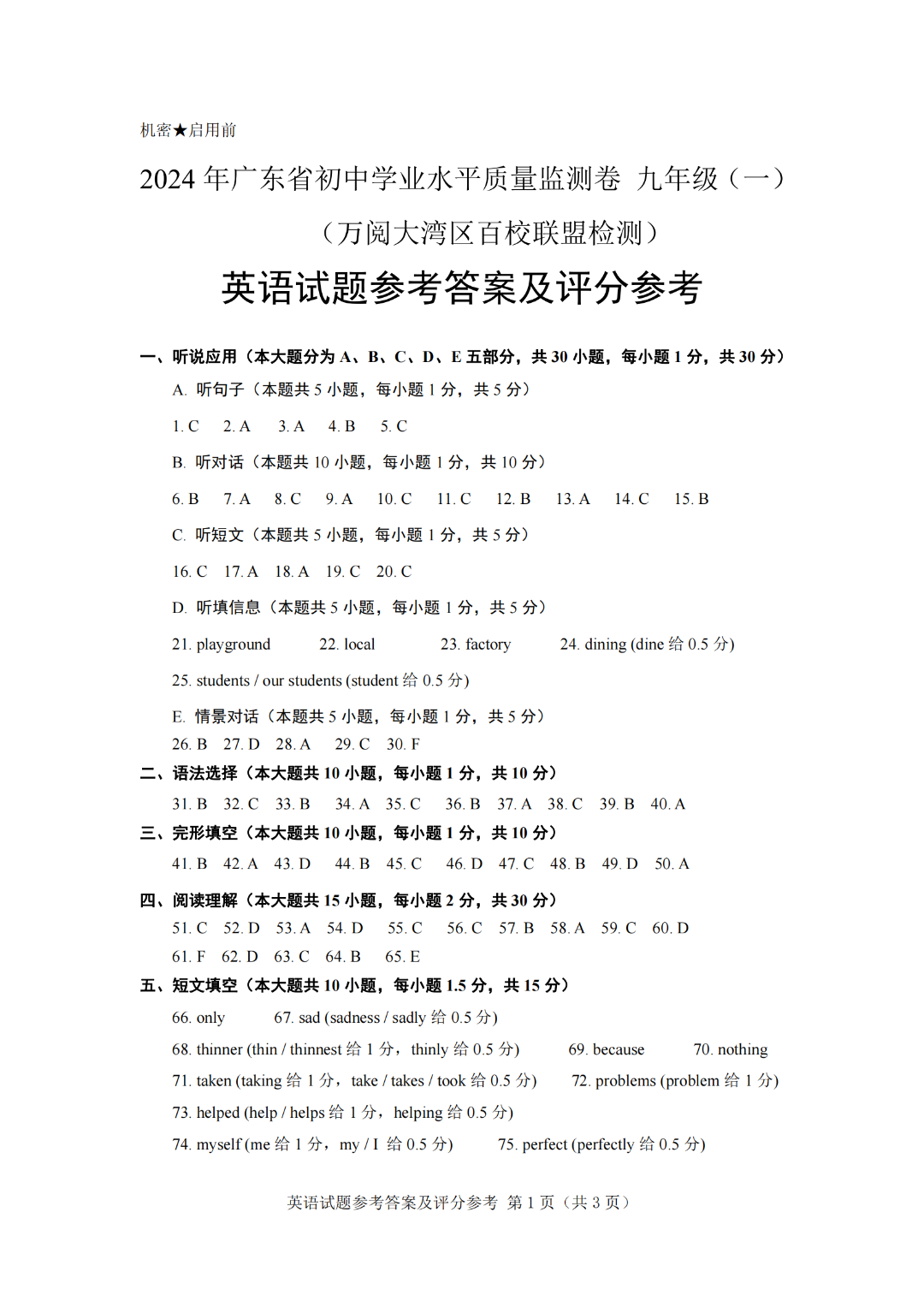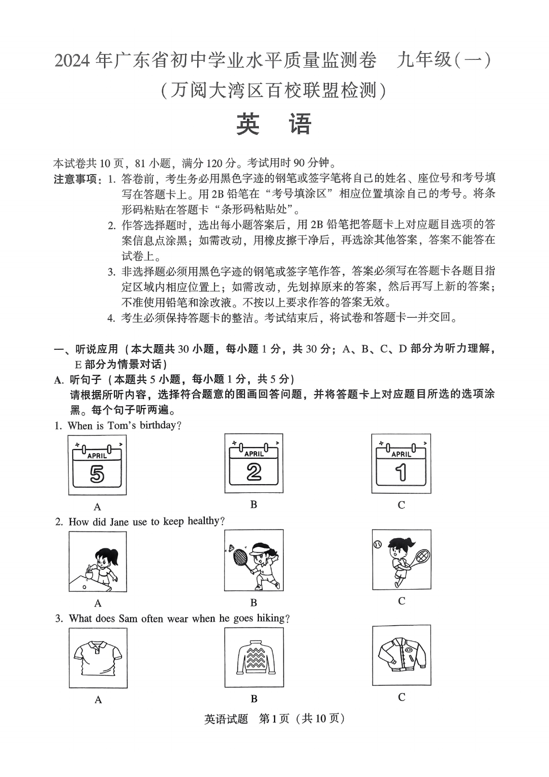 2024大湾区广一模真题