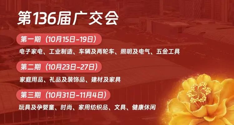 中国进出口商品交易会每年两届4月,10月举办,每届分为三期。