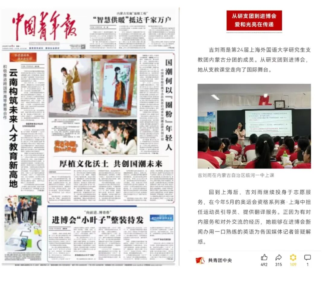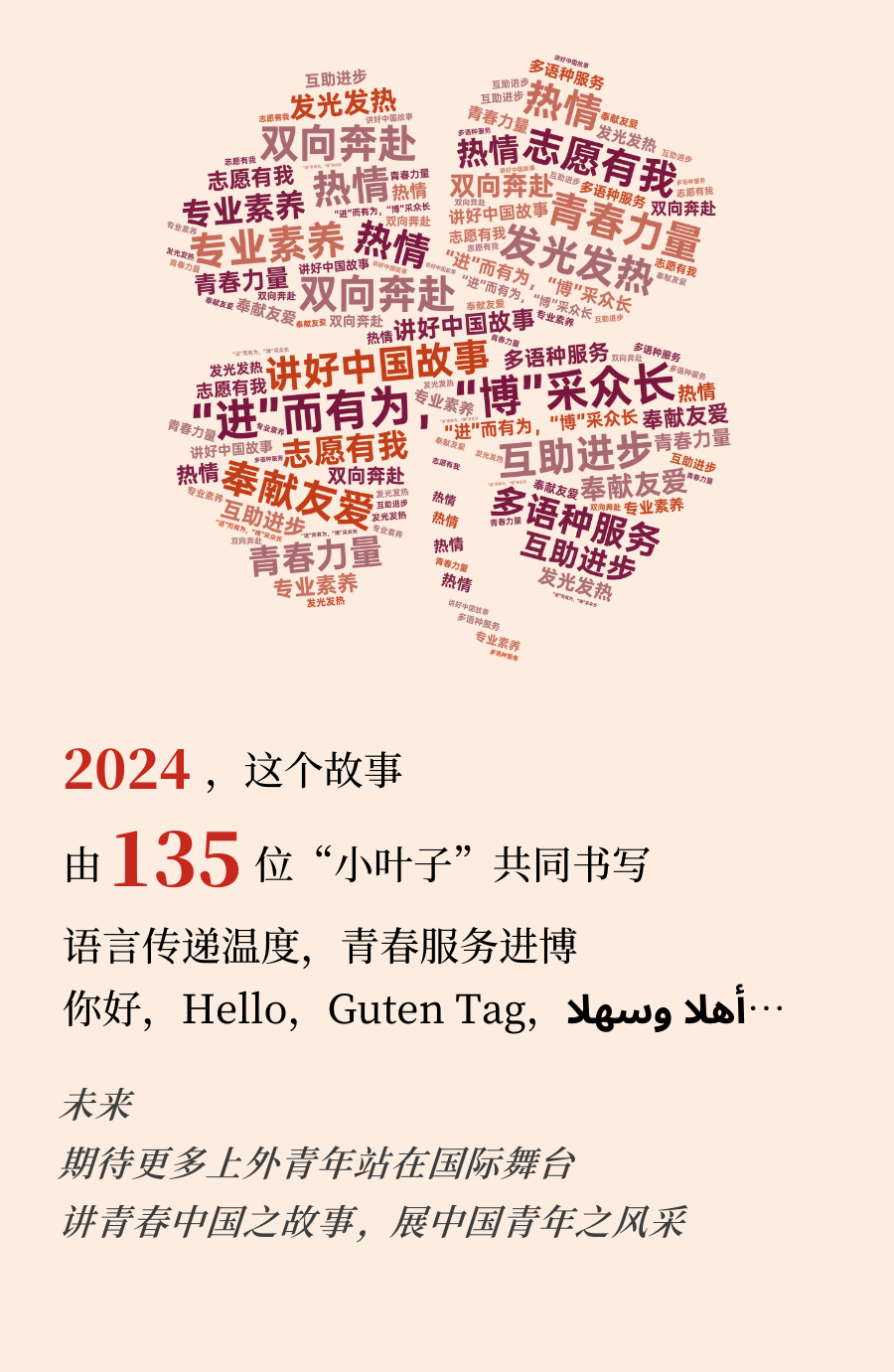 展望未来,在习近平主席提出的“让合作共赢惠及世界”的承诺指引下,上海外国语大学的“小叶子”们将继续秉承“奉献、友爱、互助、进步”的志愿精神,在进博会这一重要平台上展现中国青年的风采,为构建人类命运共同体贡献青春力量。
