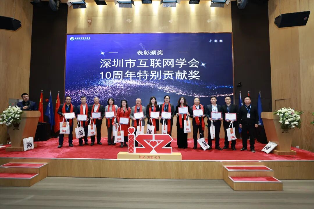 深圳市智能制造产业促进会常务会长/深圳市海外交流协会理事喻波、深圳市智能制造产业促进会副会长/深圳市互联网学会副会长高圣涵,作为战略合作伙伴受邀出席,喻波会长、高圣涵副会长获颁“深圳市互联网学会10周年特别贡献奖”、“深圳市互联网学会10周年杰出贡献奖”,高圣涵副会长同时担任全场主持人。