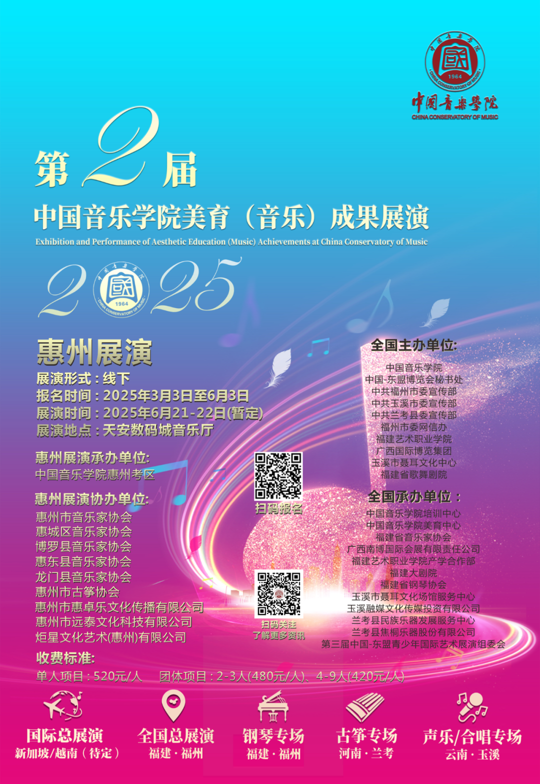 全国总展演:2025年10月福建·福州(总展演不设古筝、声乐/合唱专业)