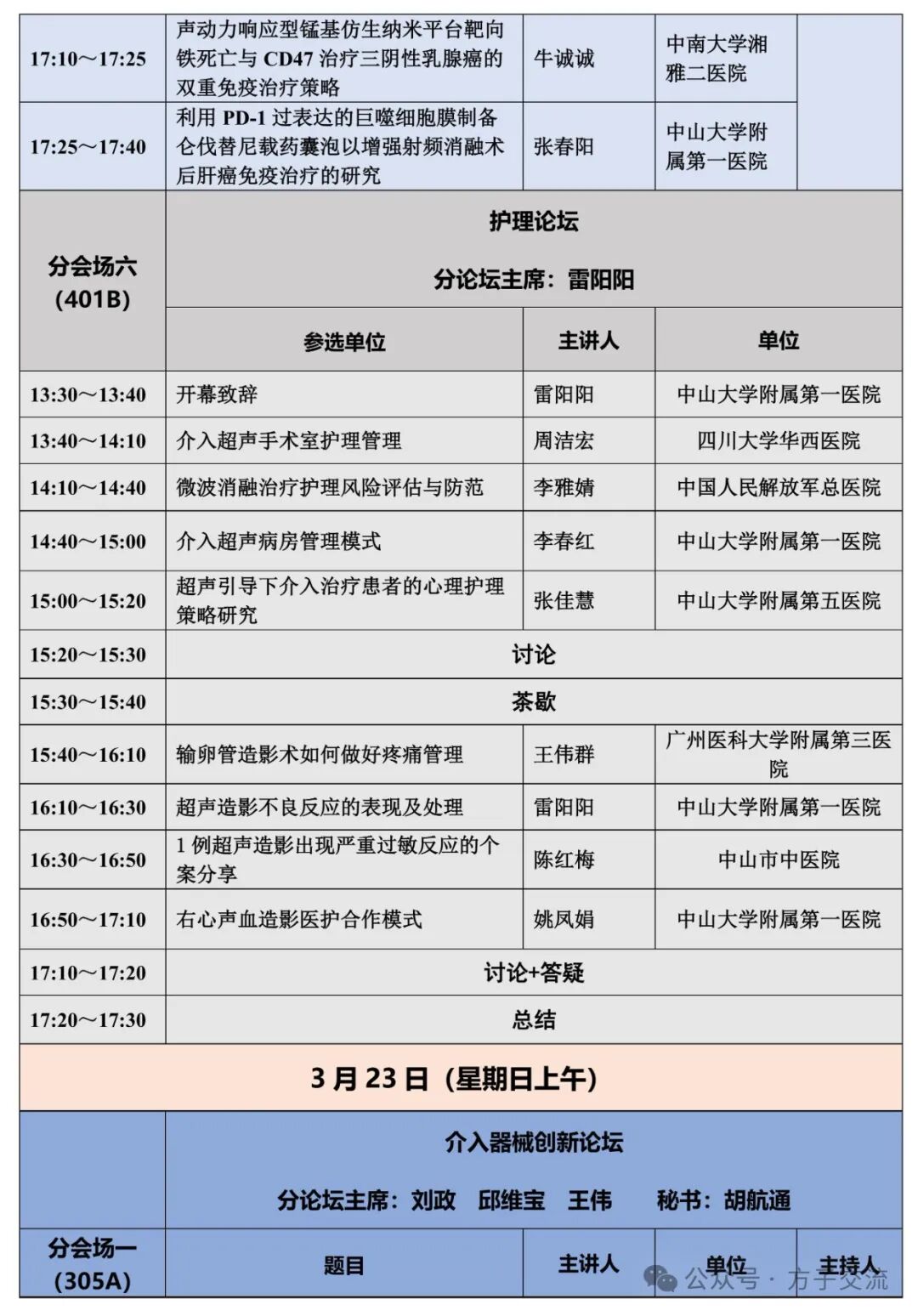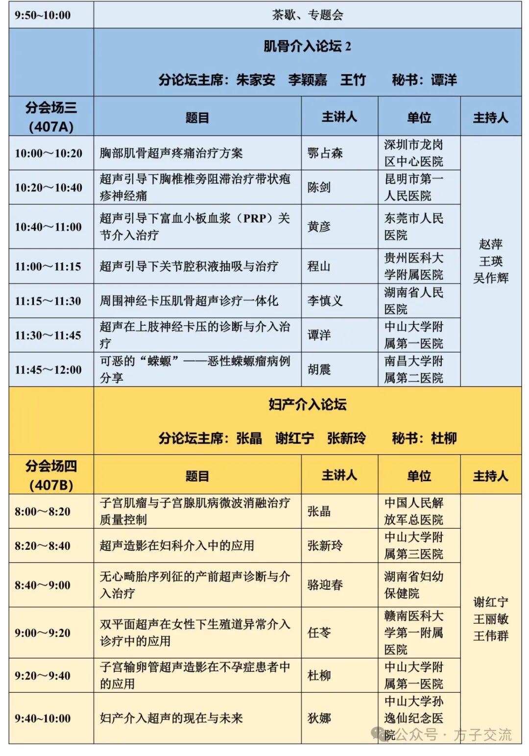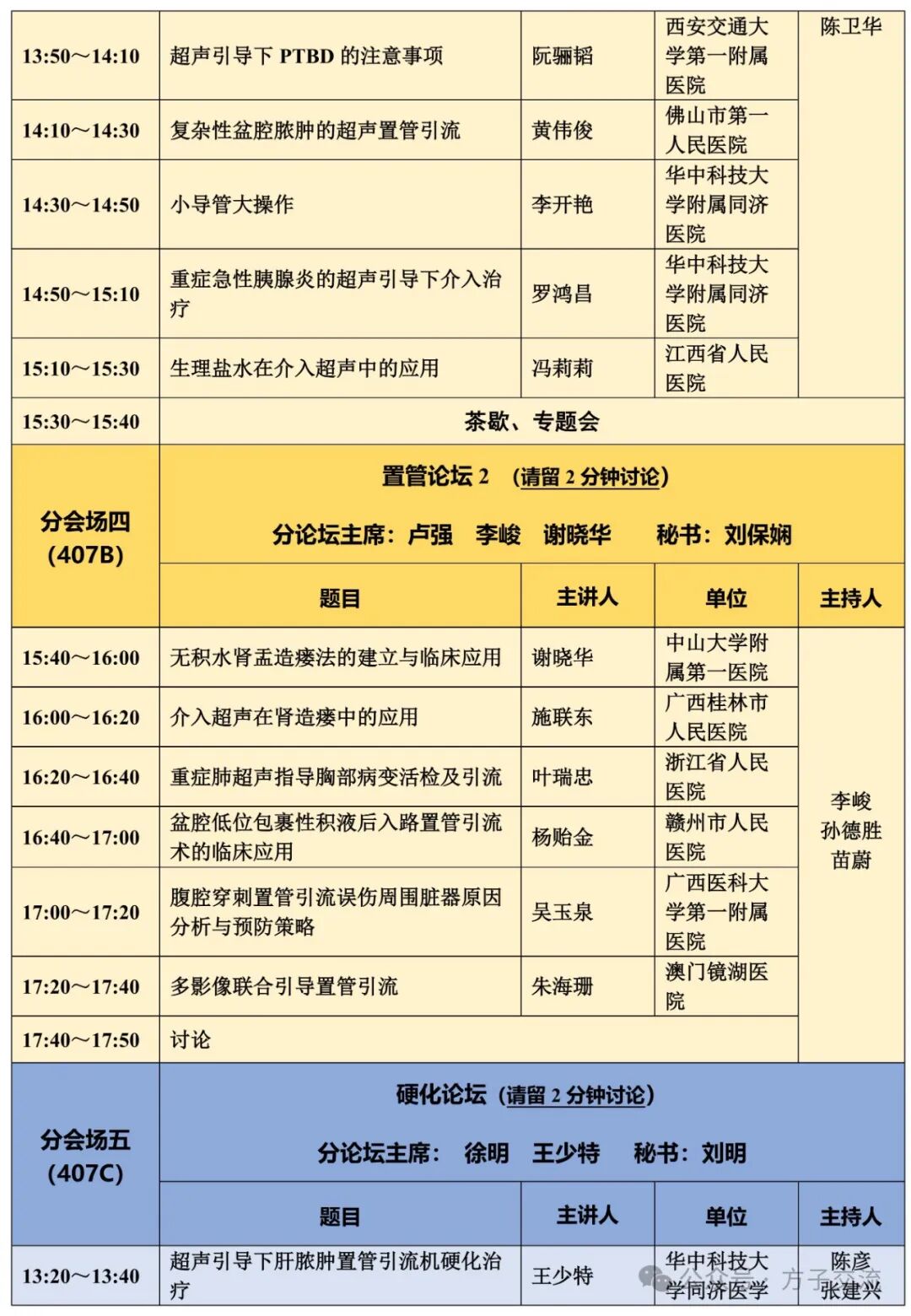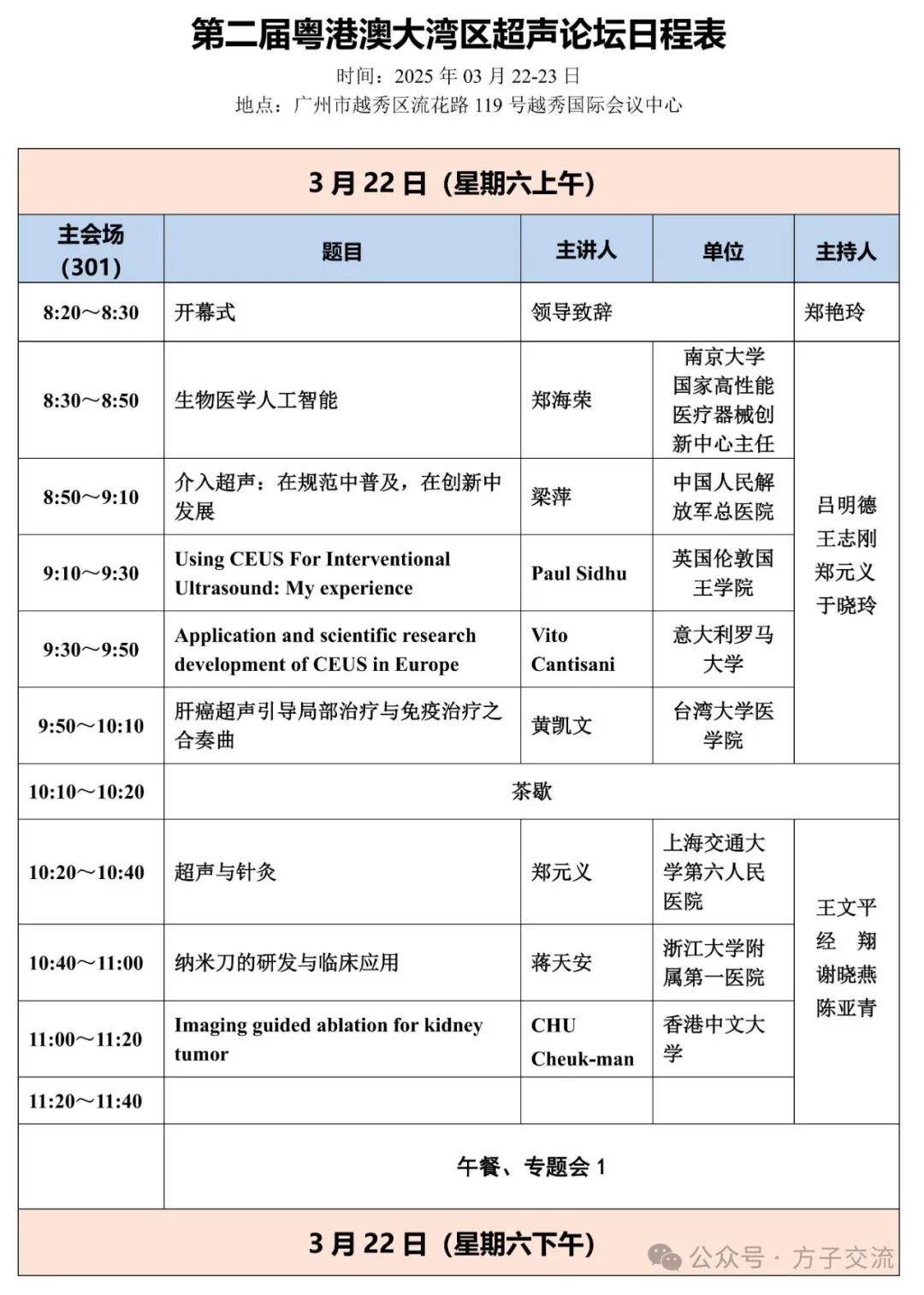本次大会以“介入超声”为主题,聚焦介入超声热点、难点、指南规范和前沿创新,按技术分类设立了12个分论坛,分享最新研究成果,搭建以大湾区为基地的学术交流平台。届时将邀请国内外和粤港澳大湾区著名介入超声专家讲座和授课,内容包括:专题报告、论文交流、病例大赛、超声美图大赛等。