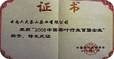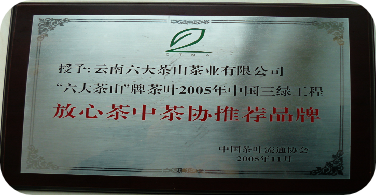 11月28日,云南六大茶山茶业有限公司被中国茶叶流通协会授予“放心茶中茶协推荐品牌”。