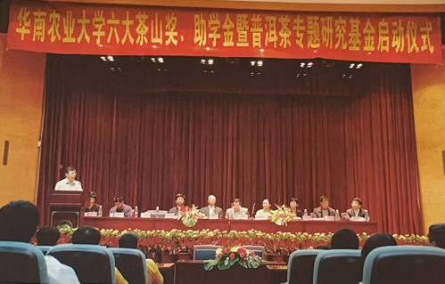 11月6日,公司与华南农业大学共同设立的“六大茶山”奖、助学金暨六大茶山普洱茶专题研究基金”签约启动仪式在华南农业大学隆重举行。在启动仪式上阮殿蓉董事长作了“珠江源 普洱情”的讲话。