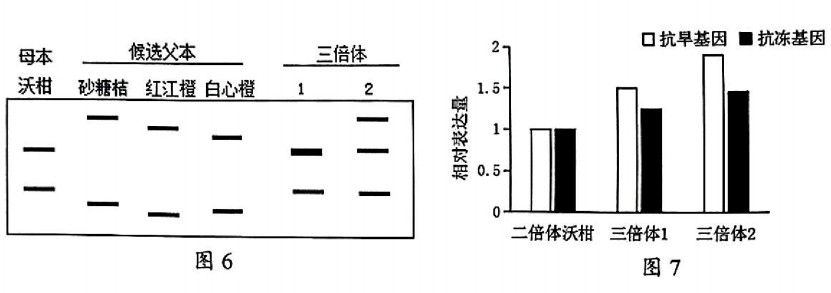 (3)进一步评估沃柑二倍体、三倍体的抗逆性差异,测定相关植株抗旱、抗冻基因的表达量见图 7,结果显示______,表明基因的加倍增强了沃柑的抗逆能力;而且三倍体2中相关基因表达的增加量多于三倍体1,表明______。