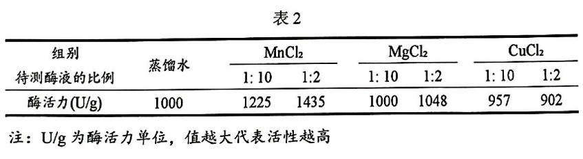 9.为探究金属离子对纤维素酶活性的影响,某研究小组将无机盐与酶以不同比例均匀混合,测定酶活力(见表2)。下列分析正确的是