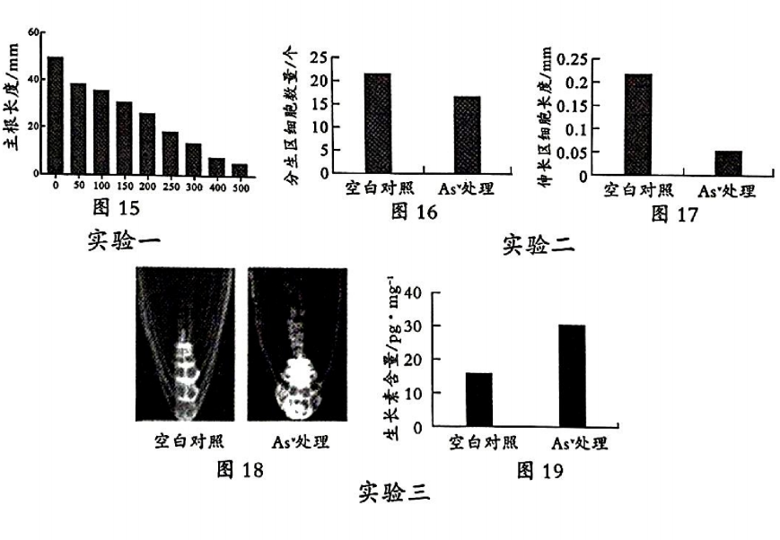 21.(9分)砷是自然界中致癌性极强的重金属,会危害植物生长和人类健康。研究者以拟南芥为实验材料,设计并开展相关实验,探究Asv(砷酸盐)对拟南芥主根生长发育影响的作用机理,部分结果见图15-19。