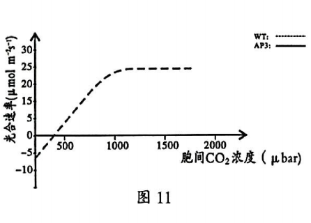 ②构建新的光呼吸通路:将苹果酸合成酶基因和乙醇酸脱氢酶基因导入烟草的叶绿体中,从而设计出一条新的光呼吸通路AP3。与原光呼吸通路相比,AP3通路促进光合作用的优势是 ,构建AP3通路同时,科学家还下调了转运蛋白PLGG1基因的表达量,目的是______。将同时具备以上改变的转基因烟草(AP3)与野生型(WT)进行田间试验,WT光合速率变化如图11所示,请在图中绘制出AP3的预期结果。