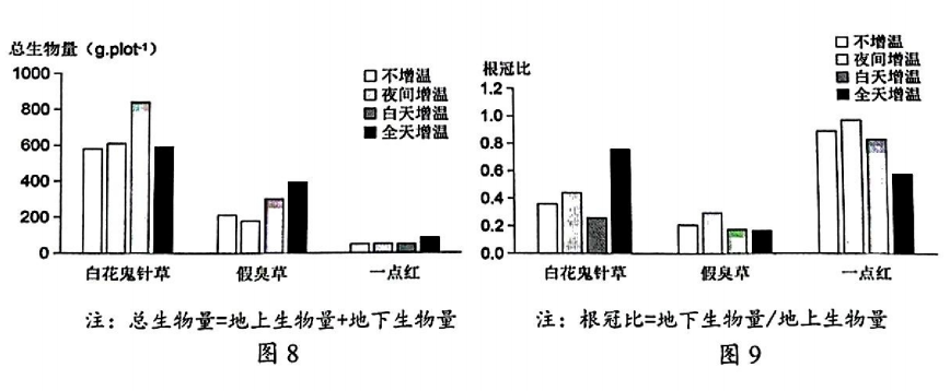 (2)植物生长状况取决于体内积累的总生物量。由图8可知,白天增温可以提高______的总生物量。