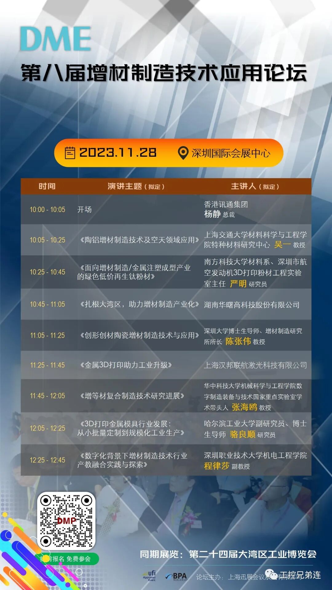 附:展会同期的第八届增材制造技术应用论坛议程及报名二维码