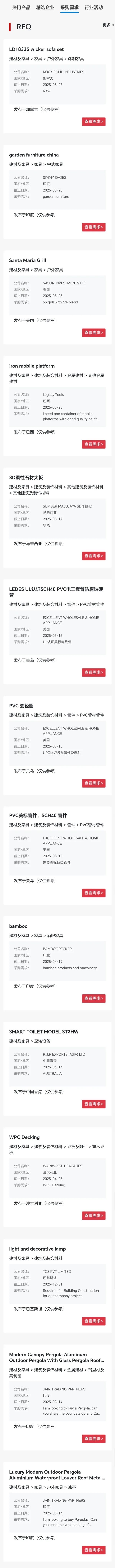 “采购需求”板块集中展示采购商主动发布的建材及家具行业采购需求,便利参展商快速捕捉订单。