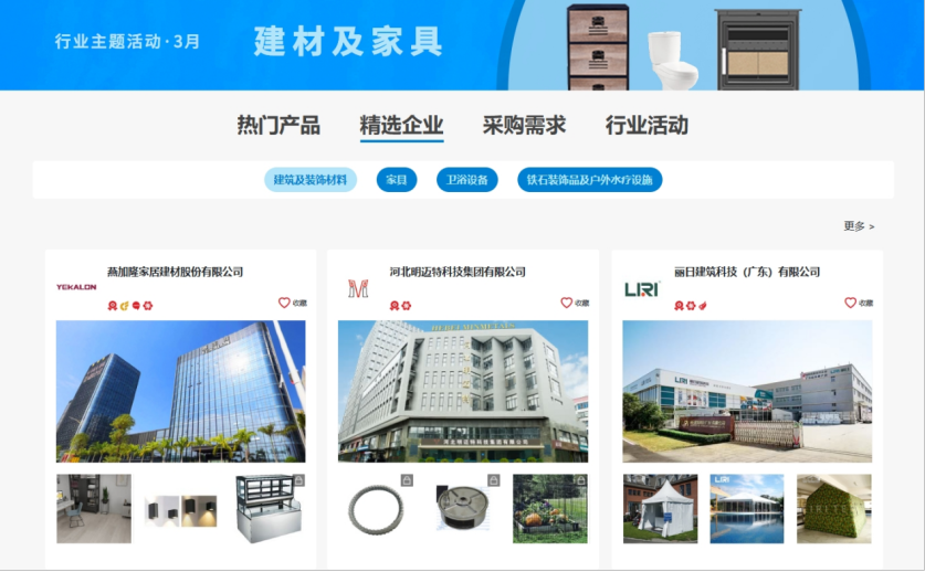 3月,我们精选广交会国际采购商众多的建材及家具行业,推出建材及家具专场活动,助力相应行业展客商开展线上贸易配对。