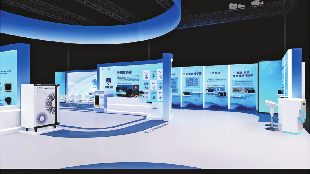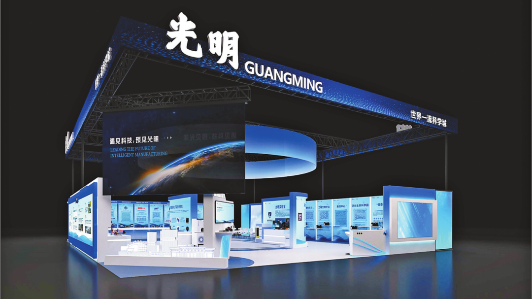 本届高交会光明区科技展团位于15号馆A090,展馆面积270平方米,展位以“遇见光明高新科技,预见光明不可估量的未来”为创意思路设计造型,寓意光明区将以光明科学城的发展建设为根基,聚焦前沿高新技术研发和科技成果产业转化,以世界一流科学城为建设目标不断积蓄动力,实现科技引领、创新驱动、预见未来的美好愿景。