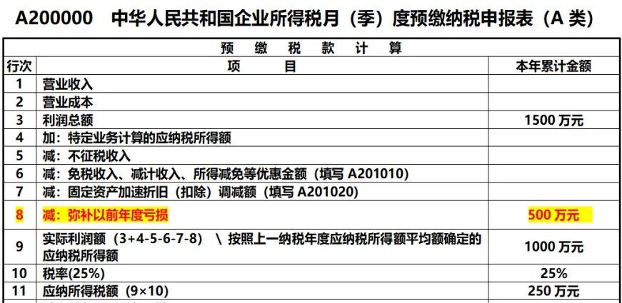 企业所得税季度申报的时候,弥补亏损填报在哪一行?