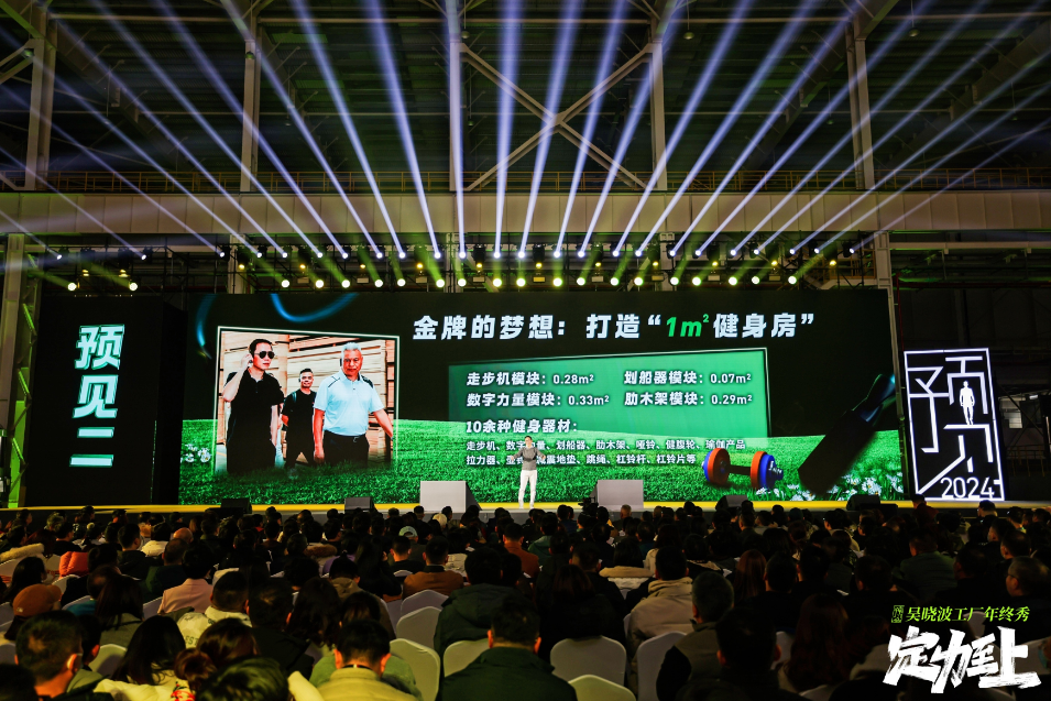 他在想如何在家里、在办公室健身,不过每个房间的一平方米面积都很金贵。他跟我说,晓波,我在想一平方米里搞一个健身房?我说老潘啊,你这也太卷了吧。结果还真能行,他说,一平方米里面,走步机模块占地0.28平方米,划船器模块0.07平方米,肋木架模块0.29平方米,数字力量模块0.33平方米,在一平方米的空间中要装走步机、数字力量、划船器、肋木架、哑铃、健腹轮、瑜伽用具、拉力器、壶铃、减震地垫、跳绳、杠铃杆、杠铃片。