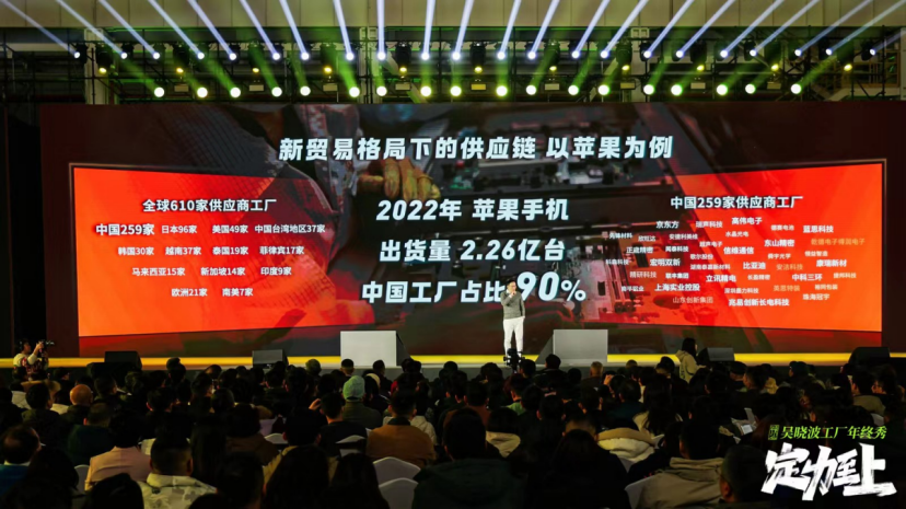 有一个案例我特别愿意在这个场合与大家分享。2022年苹果手机全球出货量是2.26亿台,其中中国工厂的出货量占比90%。2023年即将过去,我们还没有拿到今年的数据(预计会在一两个月内公布)。我问大家,你认为2023年中国地区苹果手机的产量与2022年相比,是会增加还是减少?大概率是减少,因为有部分生产转移到了越南、印度、墨西哥,有些回了美国。那么这一减少的趋势会持续吗?还会持续。