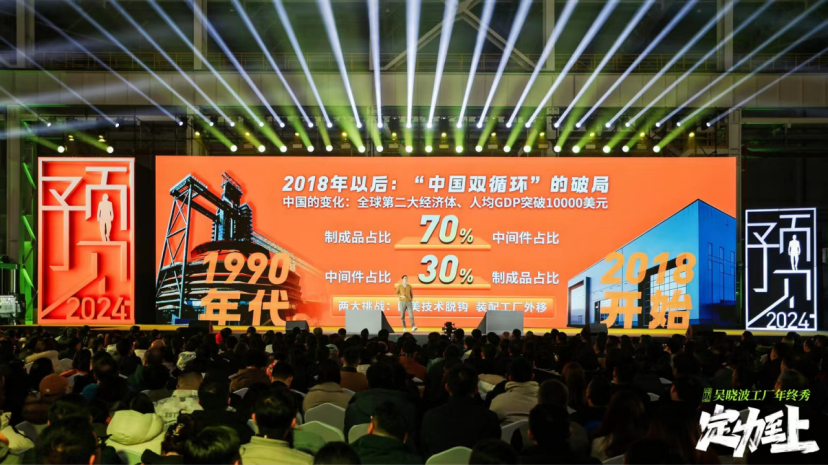 今天,中国很多省份正让制造业重新回归为它们产业发展的核心。广东省在2023年提出“制造业当家”,而我在2023年做的一件特别让自己骄傲的事,是我们与《南方日报》联合发起了“南方制造业企业家联盟”。希望在2024年,在座的和直播间里关注年终秀的华南制造业企业家们,和我们一起,为广东省、为华南、为大湾区的制造业添砖加瓦,发挥聚集的力量。