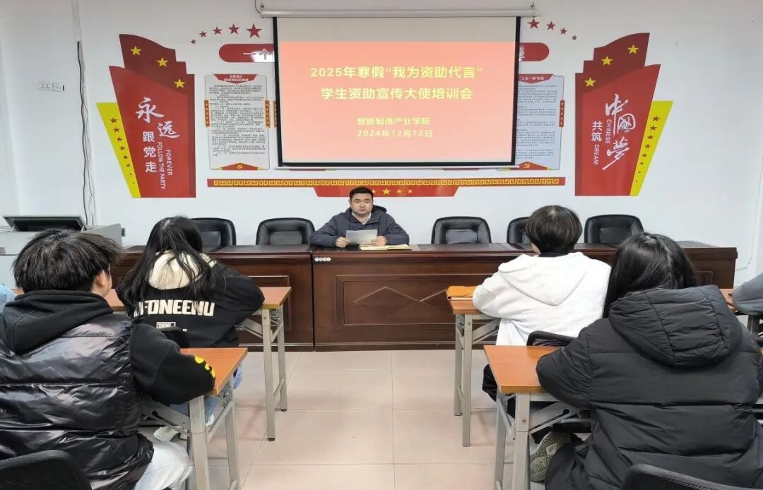 为进一步做好学生资助政策宣传工作,扩大宣传效果,促进资助政策的贯彻落实。2024年12月12日,智能制造产业学院在仙女湖校区B栋104会议室召开2025年寒假“我为资助代言”学生资助宣传大使培训会,本次会议由党总支书记范向红主持,全体学生资助宣传大使参加。