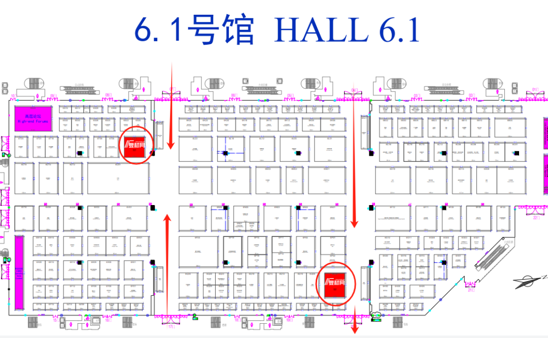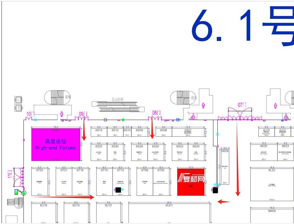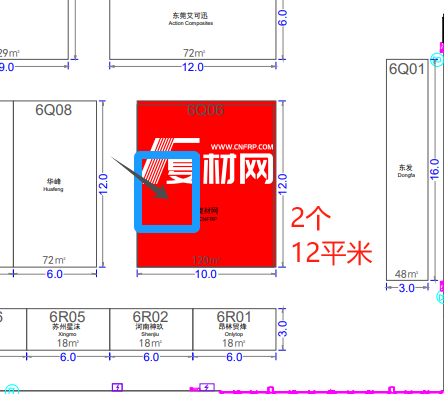 如图所示,复材网在6号馆预定了220㎡的展位,
