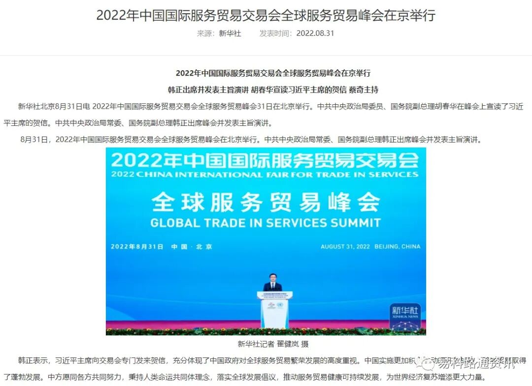 热烈祝贺我司参与的2022年中国国际服务贸易交易会于2022年9月5日圆满闭幕!2022年8月31日至9月5日,2022年中国国际服务贸易交易会在北京国家会议中心和首钢园区举办。中国国际服务贸易交易会,是全球唯一一个国家级、国际性、综合型的服务贸易平台,自2012年起每年5月28日在北京举行。由商务部和北京市人民政府共同举办,世贸组织、联合国贸发会议、经合组织等国际组织共同支持,是全球唯一涵盖服务贸易12大领域的综合型服务贸易交易会。