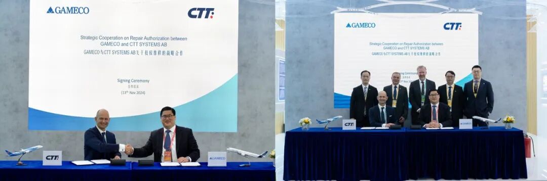 **CTT SYSTEMS AB**:签署《GAMECO与CTT SYSTEMS AB授权维修中心授权》协议,双方将共同探索新机型客舱环境控制系统的创新修理解决方案,为客户提供更加舒适安全的飞行体验。**HONEYWELL**:签署《TCAS计算机中国区唯一维修授权》协议,双方将共同面向国内市场,提高TCAS计算机的区域维护能力,保障航司的高效运营。 **中国商用飞机有限责任公司**:授予GAMECO《中国商飞C909飞机卓越维修中心》颁证仪式,这不光是中国商飞对GAMECO综合实力的认可,更是肯定了GAMECO在国产民机维护上取得的卓越成绩。**THALES**:签署《探索业务发展和合作机会谅解备忘录》,THALES将保障GAMECO对其产品维修的能力,并携手探索THALES产品在国内的维修业务发展模式。     GAMECO总经理Dr. Marc Szepan表示:“此次珠海航展不仅是展示GAMECO最新成就和能力的平台,更是我们与全球伙伴加强交流、深化合作的重要契机。我们将继续秉持开放合作的态度,与各界朋友一道,共同开创航空业的美好未来。”     经过35年的发展,GAMECO已经建立了完善的全球服务网络,并且拥有一支高素质的专业团队,能够满足客户多样化的需求。随着全球航空市场的不断发展,GAMECO将继续坚持创新驱动发展战略,不断提升自身的核心竞争力,努力为全球客户提供更优质的服务,为推动世界航空事业的进步贡献更多力量。