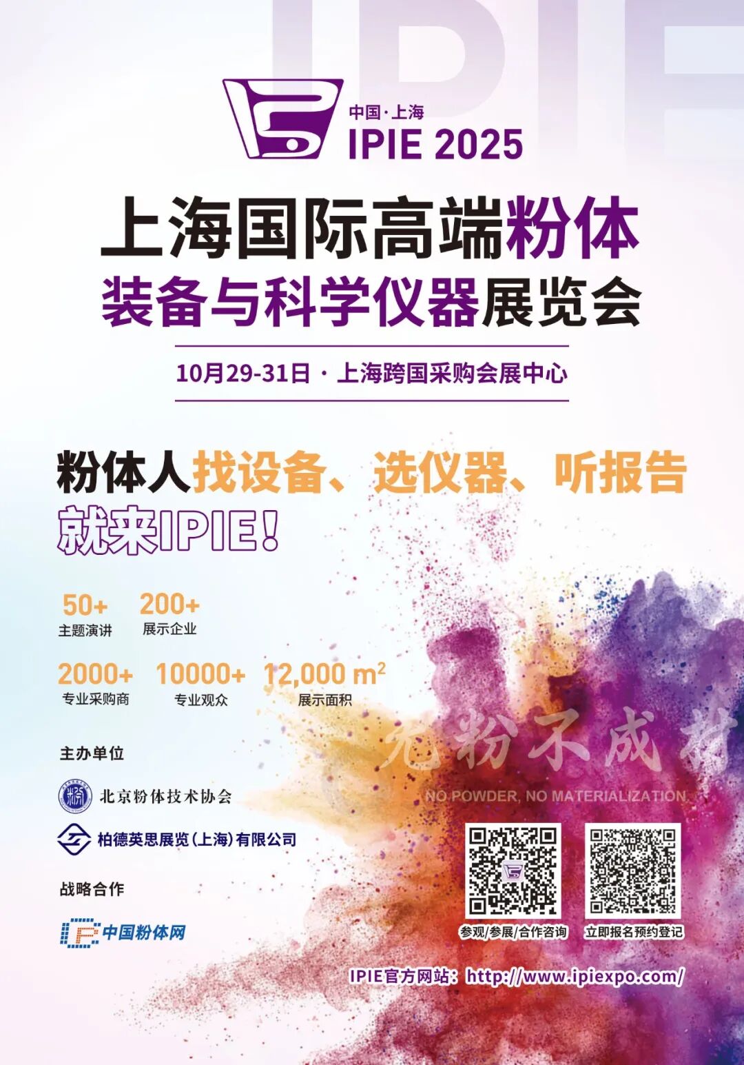 2025IPIE上海国际高端粉体装备与科学仪器展览将于2025年10月29-31日在上海跨国采购会展中心举办!IPIE2025是由北京粉体技术协会与柏德英思展览(上海)有限公司联合主办,并与行业资深媒体中国粉体网达成战略合作,共同打造的粉体装备与科学仪器行业应用领域的一站式商贸采购与交流平台。
