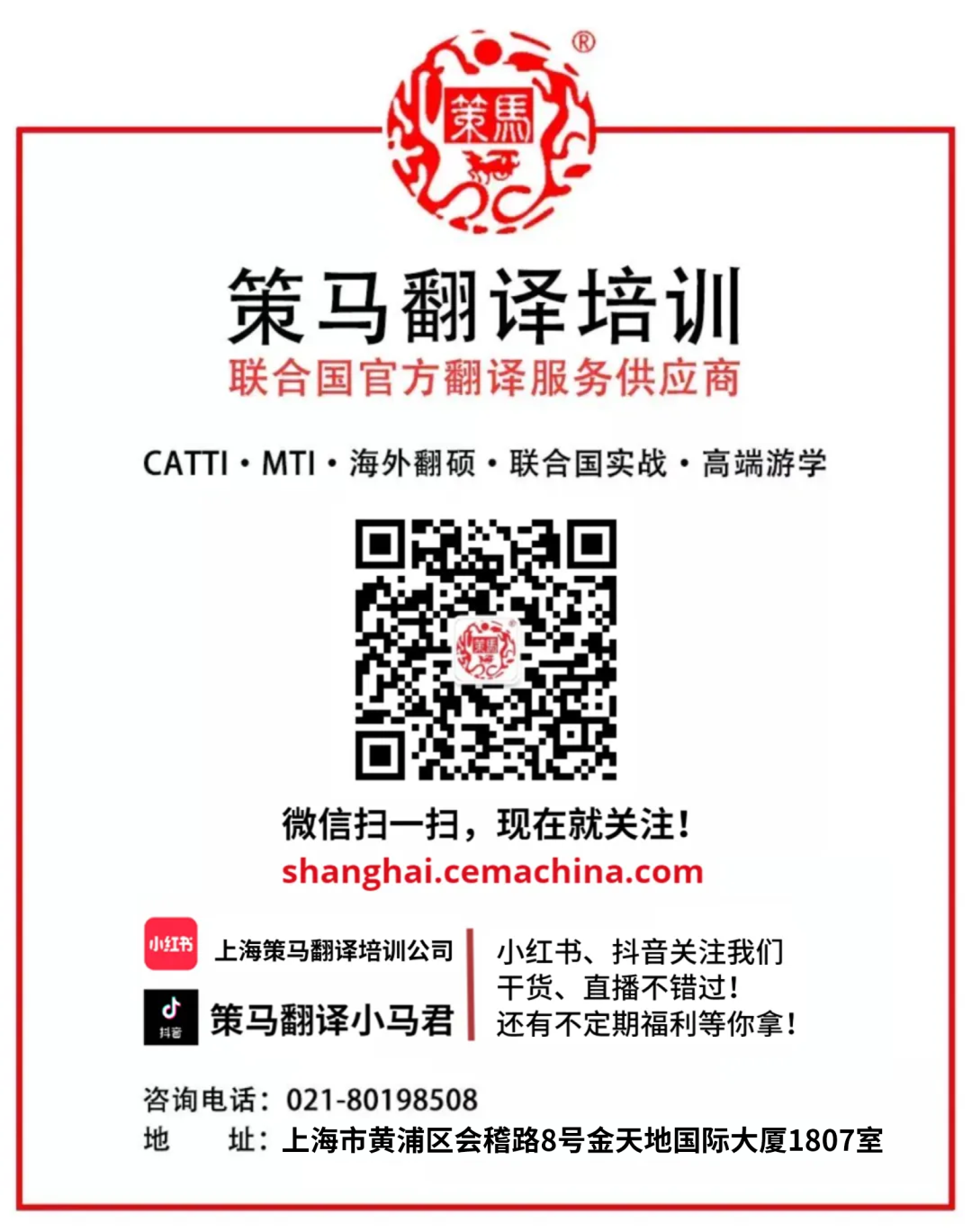 策马集团是联合国官方供应商(ID:496547)、联合国全球契约组织成员(ID:109301),从事语言服务、涉外咨询、教育培训、人力资源、全球传播、国际会展等六大业务,以“助天下融通,促中外和谐”为愿景,拥有ISO9001:2015质量管理体系认证,是全球领先的综合涉外服务机构,在北京、上海、广州、南京、成都、长沙、苏州等地设有办公室。员工80%以上具有名校硕士及以上学位。管理团队成员均毕业于美国哥伦比亚大学、中国人民大学、复旦大学、上海外国语大学等知名学府。其中多人担任中国人民大学、复旦大学、华中科技大学、中山大学、华东师范大学、中央民族大学、对外经贸大学、北京外国语大学、上海外国语大学、上海财经大学等校硕士生导师。