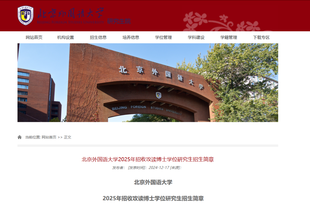 近日,北外公布了2025年博士招生简章,内容摘录如下: