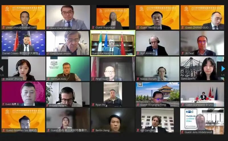 爱尔兰、法国、挪威、瑞士、英国、比利时6个欧洲国家的驻华大使馆以及意大利对外贸易委员会、中国德国商会、爱沙尼亚企业局、德国北威州国际商务署的发言嘉宾围绕各自国家服务贸易优势特色及2022年服贸会参与计划进行介绍。