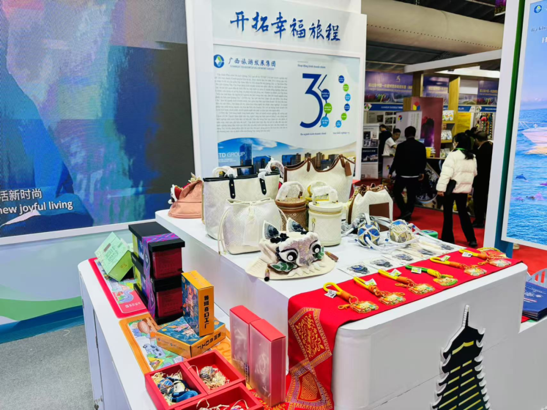 博览会上,广旅集团通过现场讲解、实物展陈、图文展示等形式全方位、多角度展示集团公司在文旅融合、康养服务、文体创新、科技赋能等多个领域的创新成果,向国内外游客和业界同仁展示了广旅集团创新融合发展的新面貌、新活力。广旅旅行社集团推出的国内外旅游线路产品、广旅文旅股份公司推出的三江侗族系列文创产品、广西工美院精心打造“工美臻选”民族特色产品、广旅实业公司推出的“壮美优品”桂字号名特优产品、圣源六堡茶等一系列品类丰富的文化旅游产品以及柳州三江程阳八寨、靖西古龙山通灵大峡谷、桂林猫儿山、钦州三娘湾出海寻豚、广悦华冠岭山庄、广悦华阳朔河畔度假酒店、巴马赐福湖君澜度假酒店、广西旅居度假套票等优质旅游服务产品吸引了众多领导、嘉宾驻足欣赏体验,得到了现场观众的青睐。