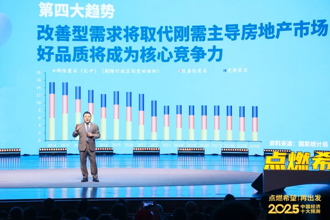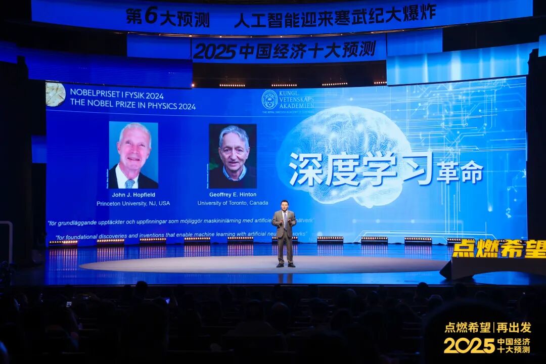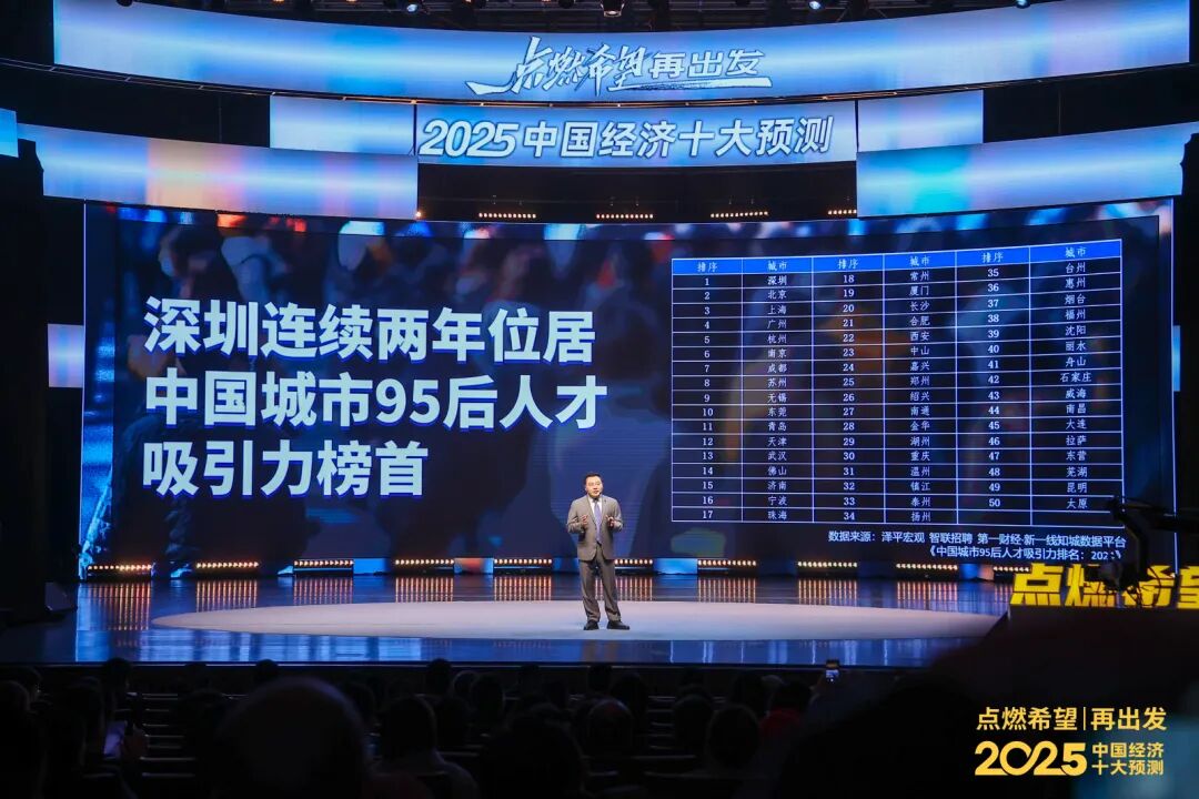 今天,我演讲的题目是:点燃希望·再出发——2025中国经济十大预测。为什么再出发?因为时代变了,我们需要看到变化,顺势而为,重新出发。为了今天的这场演讲,我调研了上百家企业,看了几十本书,希望对你看清时代的趋势、把握未来的机遇有帮助。在这里,我要感谢深圳人才集团、深圳广播电影电视集团、洋河梦之蓝·手工班等合作伙伴对本次活动的大力支持!2024年即将过去,展望2025,未来将有哪些新趋势?发生什么大事件?诞生哪些新机遇?让我们一起点燃希望,勇敢出发!【这是一个新周期、新时代,顺应新趋势,把握新机遇,勇敢再出发,一切发生皆有利于我】这两年,我们组建了泽平宏观实战游学,看了很多前沿科技和标杆企业,读万卷书,行万里路,很多同学说很有意思。我给我们的游学写了三句slogan:第一句,正心正念,坚持做长期正确的事,最终就会开花结果。第二句,悲观者正确,乐观者前行,世界终将属于长期乐观主义者第三句,团队比平台重要,同行的人和沿途的风景,比要去的远方重要。大家经常说,唯有长期主义才能穿越周期,在这里,我要把这句话改成:“唯有长期乐观主义才能穿越周期”,不仅要长期主义精神,更要有乐观主义精神。为什么要乐观?因为,开心乐观就是生命的意义,结果虽然重要,但是如果过程不开心,结果再好也毫无意义。所以,我希望今天这场演讲能达到两个目的,一是讲些干货,能帮大家解决现实问题,二是年底给大家打打气,让我们振奋精神迎接新的一年!朋友们,我们这个时代,不仅是变化,堪称巨变。百年未有之大变局,旧秩序开始瓦解,逆全球化、民粹主义、地缘冲突、国际秩序调整等现象涌现。新秩序正在重建,站在新周期的起点上,全球经济社会的低谷往往酝酿科技创新、商业模式、经济制度和产业浪潮的新一轮革命。以人工智能和新能源为代表的第四次科技革命如火如荼,企业千帆竞发出海全球,中国拉开大规模刺激经济的序幕,新质生产力被寄予厚望。在准备这次年度演讲前,我跟几十位企业家进行了交流,现在企业家的基本画像是三点:一是大家这两年对当下内外部形势认识已经比较清醒,这跟前几年有很大不同。比如,前些年还有人幻想外部的贸易摩擦能够很快结束,经济还能重回高增长时代,房价还有可能大涨,这两年企业家基本都清醒了。二是大部分企业家其实并没有躺平,大家还在努力的奋斗,积极的折腾。三是面对新常态,大家都在求新求变。比如,寻找新市场,出海;寻找新赛道,新能源、低空经济、银发经济;寻找新工具,大家都在关注人工智能。这是很大的变化,大家对旧时代不再留恋,开始开启新时代的大门,都在寻找新趋势、新机遇。百年未有之大变局,也是百年未有之大机遇。像马斯克、张一鸣、雷军、王传福等这些新一代领军企业家,顺势而为,抓住了时代的机遇。赢在大势,才能赢在未来。在这个巨变的时代,比勤奋更重要的是顺势而为。为什么?打个比方,大家都是跑步,你在正确的方向上跑步,就好像在高铁上跑步一样,自带300公里时速。300公里时速是什么?就是时代给你的机会。要么乘上时代的列车,要么被时代的列车抛下。当我们看看富豪榜、企业榜起起落落的时候,明显感受到时代变迁,对亿万人命运的改变。这些改变,对个体是偶然,对群体是必然。变才是最大的不变。今年3月,小米SU7发布,雷军一场发布会,卖出近10万辆车,震动车圈,成为现象级事件,引发各大车企掌门人纷纷投身新媒体。如果你以为这是什么创业爽文,那就错了,事实上,雷军是典型的大器晚成,甚至在互联网大潮中起了个大早、赶了个晚集。雷军1992年大学一毕业就加入了金山软件,结果呢,面对“前有微软,后有盗版”的困境,面对习惯了免费软件的中国市场,金山软件一度生存都极其困难,为什么?选错了赛道。直到2007年金山上市,雷军才算是给一起奋斗的兄弟们一个交代,这16年的代价是什么?是错过了整个PC互联网时代。同时代的创业者有腾讯的马化腾、阿里巴巴的马云,这些企业后来的发展十倍百倍于金山。十多年前接受采访,回望金山的艰苦奋斗岁月,雷军不服气的说:我这个人很努力,很勤奋,带着一帮和我一样的人,打了这么多年江山,整成这个样子,我肯定不服气。要是我没努力也认了,但是我非常努力。有了这样的痛彻领悟以后,雷军把自己的投资基金起名“顺为资本”,顾名思义,就是顺势而为的资本。后来喊出了“站在风口上,猪都能飞起来”的名言。再到后来,2010年,雷军创立了小米,选择了快速腾飞的智能手机赛道,用互联网思维造手机,圈“米粉”无数。2024年,雷军又用互联网思维造车,用新媒体思维营销,越玩越溜,妥妥的抓住了互联网流量红利和智能手机红利这两大时代红利。现在的雷军,成就跟金山时代远远不可同日而语。以前我们强调勤奋,确实勤奋很重要,但是,试问哪个行业的创业者不勤奋,为什么成就却千差万别?所以我们需要给成功重新定义,成功=勤奋+顺势。所有的新机遇都将经历四个阶段:看不见-看不起-看不懂-来不及。我们要始终保持对新事物的好奇心,对未来的不断学习。既要低头走路,也要仰望星空。所以,在这个岁末年初,我邀请大家拿出一些时间,一起仰望星空,思考更长远的事情,制定新一年的战略。站得高,才能看得远,看看哪些是大势所趋。人工智能是大势所趋。我查了一下11月底英伟达的市值,3.5万亿美元,什