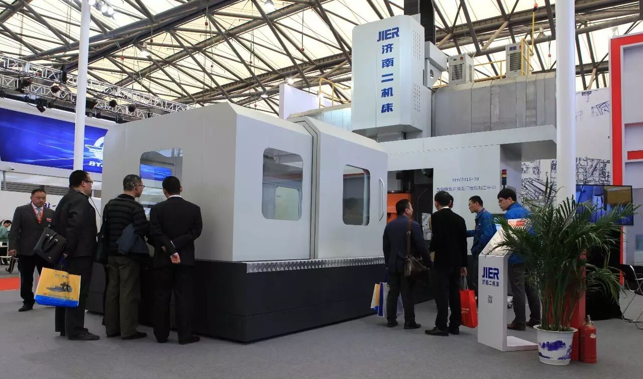 济南二机床XHV2416×30五轴定梁龙门镗铣加工中心亮相展会,这是国内首台配置自主研发的4000rpm机械双摆角万能铣头的五轴联动龙门系列产品。主要用于航空航天行业高温钢、钛合金等大型复杂曲面零件的加工,可完全替代进口产品。