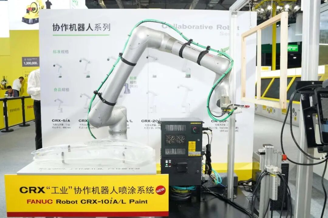 再如,工业机器人四大家族之一的发那科,带来了其CRX系列“工业”协作机器人,展示了电池包装配及检测系统、超大扭矩拧紧及视觉跟随系统、喷涂系统等应用。其中,CRX-10iA/L协作机器人以其10kg的负载能力和1418mm的臂展范围,结合复合机器人手抓及视觉AI防错功能,灵活实现了汽车电池包的多项高精度作业,且安全接触停止功能灵敏,无需安全围栏,降低了操作难度。