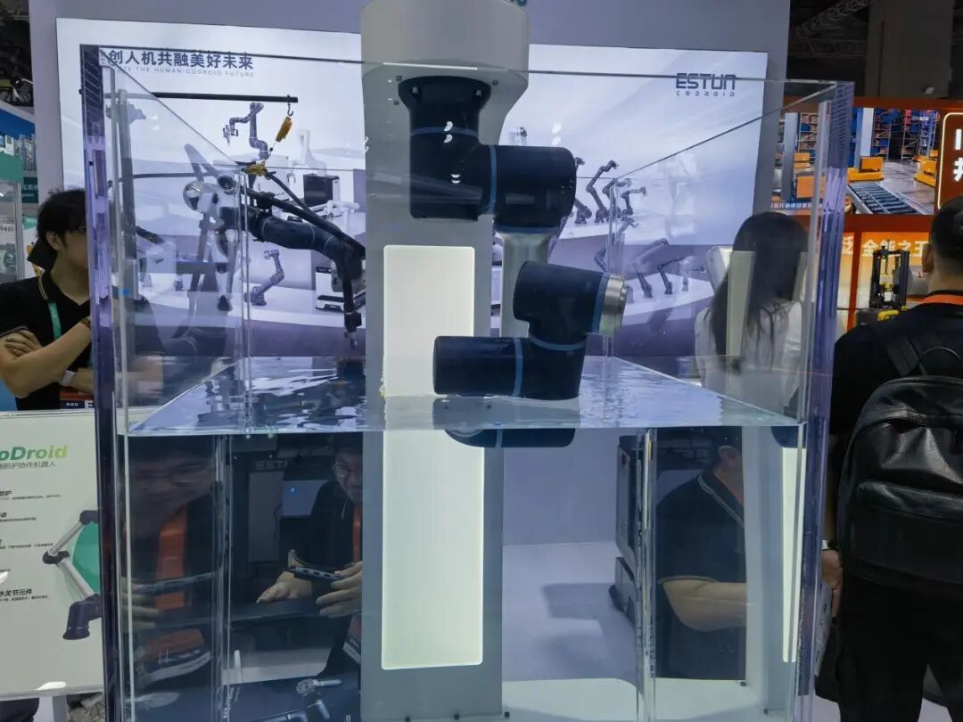 埃斯顿酷卓展位上,其S系列IP68高防护协作机器人通过水缸浸泡演示生动展示了其防水性能。该系列涵盖S3-60HP、S5-60HP及S10-140HP三款力作,凭借升级后的防护等级,可有效抵御环境因素侵袭,大幅延长了机器人的使用寿命。无论是高油污、高粉尘的恶劣环境,还是水下作业、液体喷溅的挑战,这些机器人都能实现100%的全面防护。