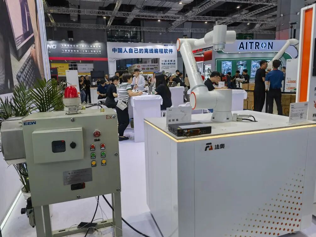 法奥机器人展位上,防爆机器人FR10进行了精彩展示。这款机器人采用了多重防爆设计,不仅能够有效防尘、防油污,还能防止喷射水的侵入,从而确保在各种爆炸性气体环境以及可燃性粉尘环境等高危场所中的安全应用,如喷涂作业、石油开采及化工生产等危险场景。值得一提的是,FR10防爆机器人还具备智能互联与远程监控的功能。它集成了远程控制系统,能够实时监控机器人的运行状态。并通过WIFI连接,支持远程进行故障诊断与软件升级,确保设备始终保持在最佳的工作状态。