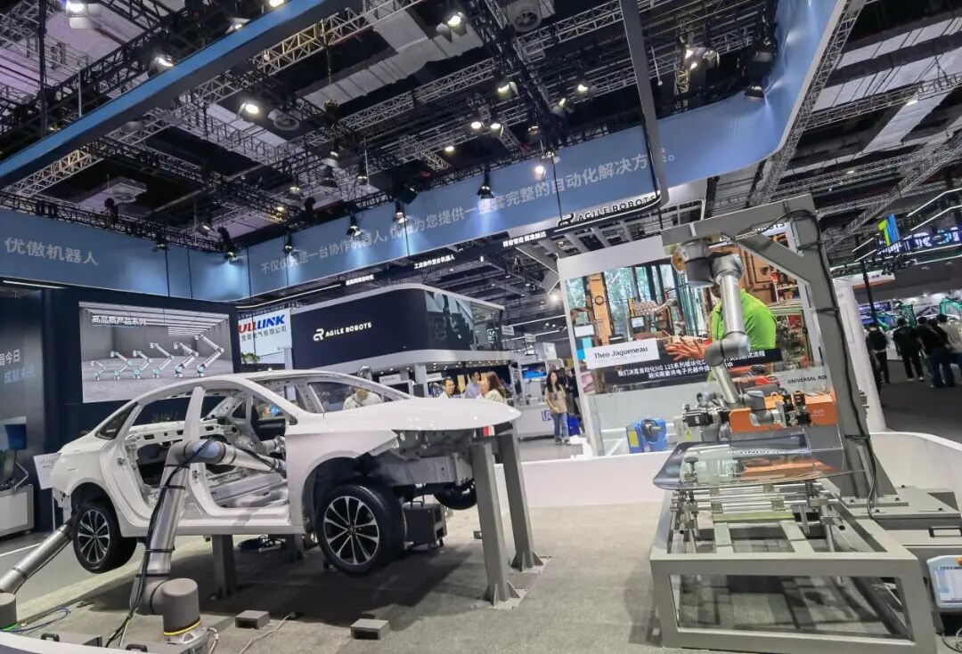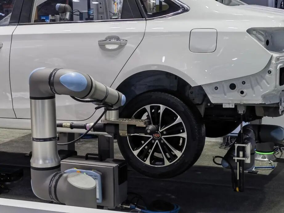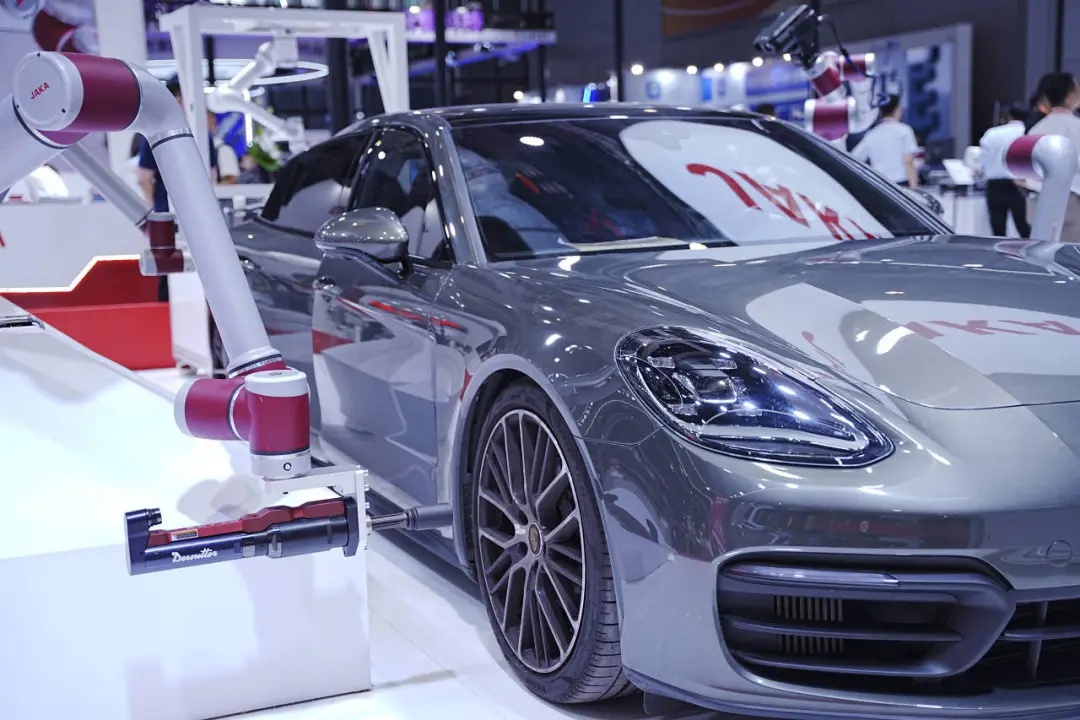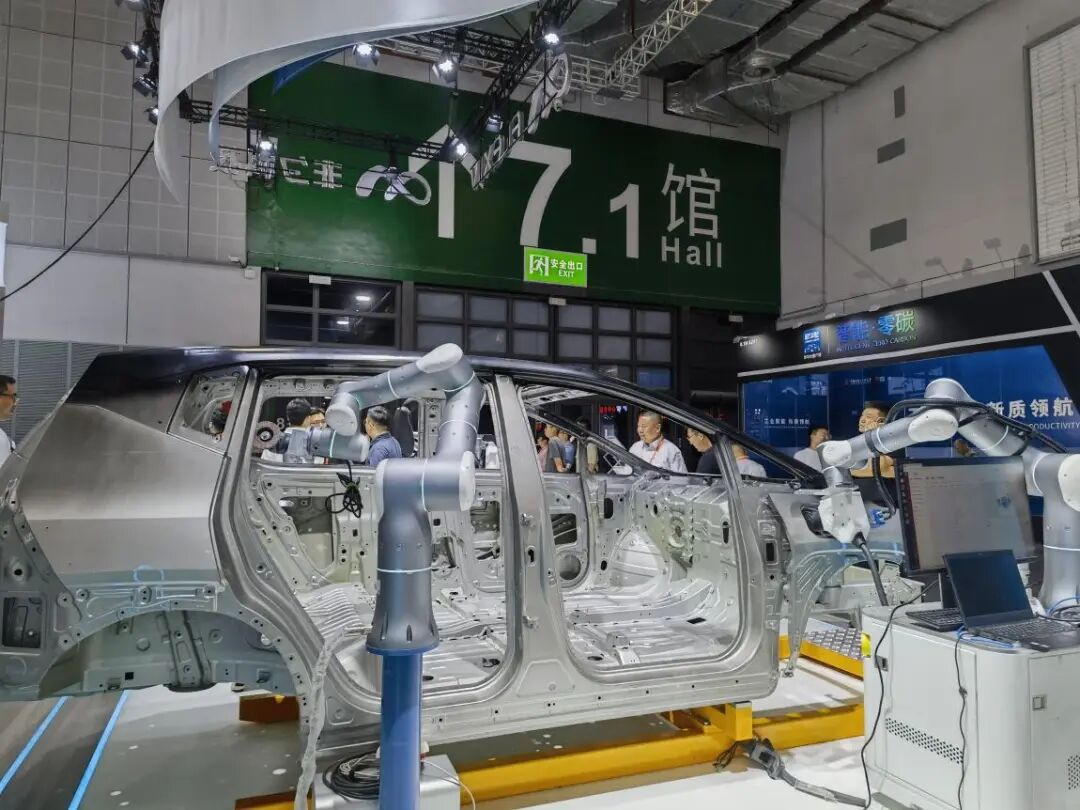 而在智能化与信息化制造正成为行业发展新趋势的新能源汽车制造领域,针对如车漆检测、车底螺丝锁付等工业机器人应用场景受限的领域,节卡、非夕科技以及优傲等几家企业也都不约而同地展示了针对汽车制造的整体解决方案。