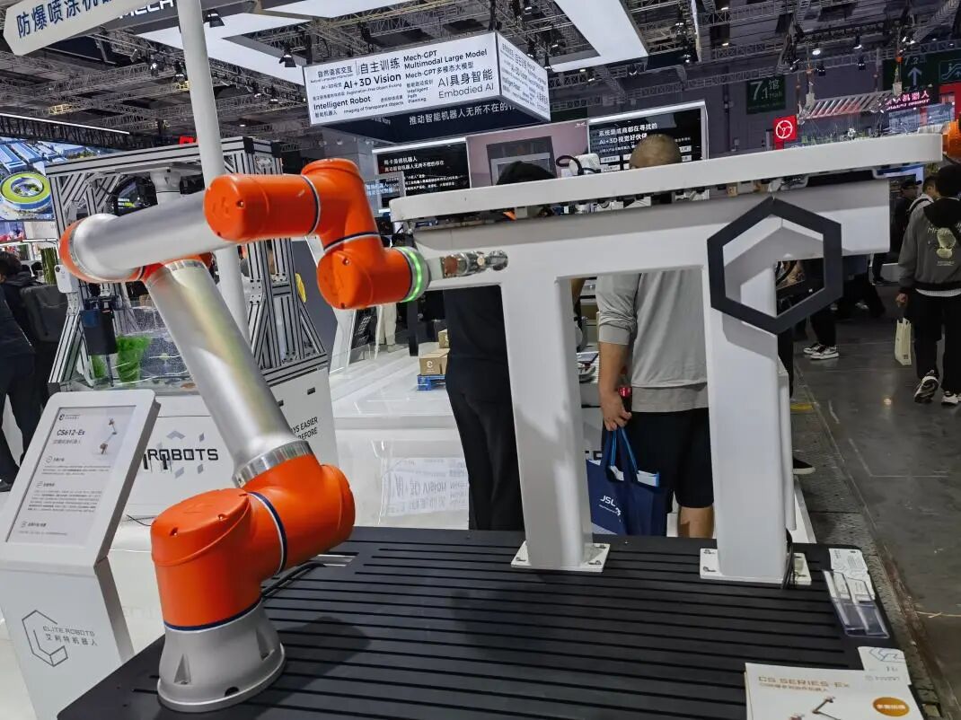 随着市场对协作机器人负载能力需求的日益提升。在此次工博会上,埃斯顿酷卓机器人、大族机器人、优傲机器人,以及艾利特机器人等众多企业,纷纷展示了其20kg及以上大负载机器人的搬运与码垛应用实例,彰显了各自在技术创新与实力提升方面的显著成就。