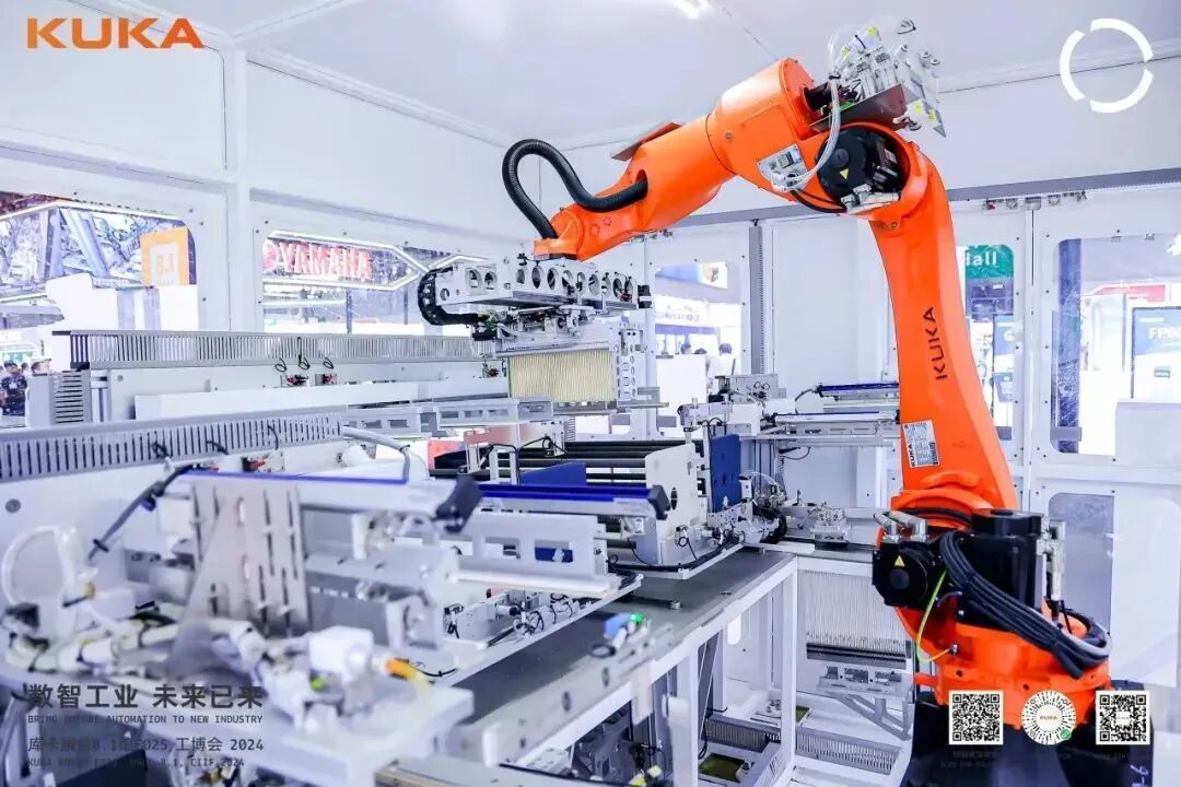 同属四大家族之列的库卡,也带来了其石英舟插卸片工作站。该工作站的主体采用了KR CYBERTECH系列中的KR 35 R1840-2机器人,具备35公斤的额定负载能力,并拥有可达1840毫米的臂展长度。