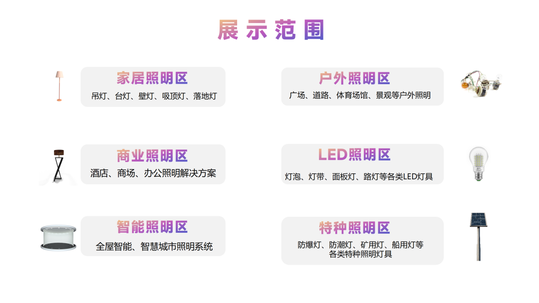 • 前沿科技展示:汇聚LED照明、智能照明等前沿科技产品,展现照明行业的创新力量。