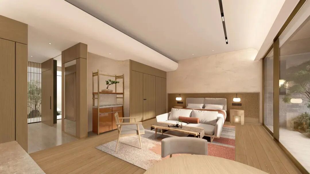 酒店拥有102间舒适雅致的现代中式风格客房,其中包括17间套房,专门设有的独立双庭院或私人观景阳台,让宾客沉浸式感受江南山水的静谧之美。