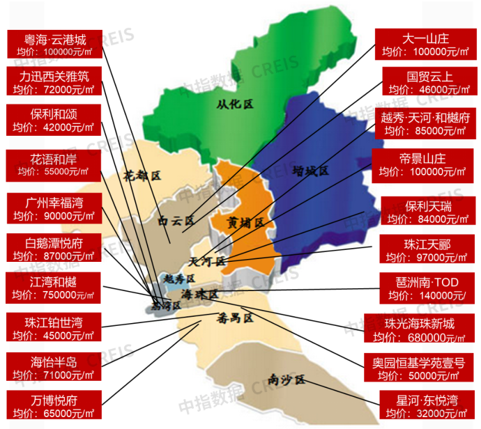 利好政策的持续释放,也将有利于带动市场成交的回升。但由于2月份受春节假期的影响,开发商推货节奏有所放缓,2月市场供求规模略显不足,广州新建商品住宅整体供应8.7万㎡,成交新建商品住宅成交面积25.7万㎡。整体来看,受成交结构影响,成交均价呈结构性上涨。那么各大项目1-2月成交情况如何?下面就随榜单来详细了解。