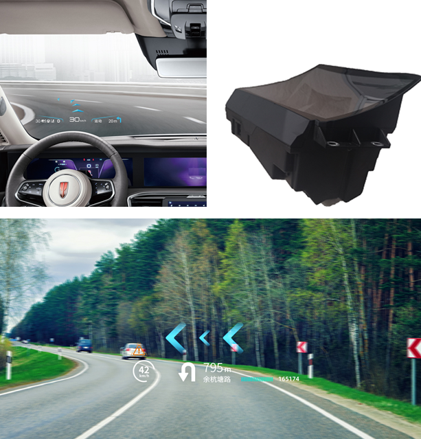 产品介绍:W-HUD为基于TFT显示技术的汽车平视显示技术产品,该产品以驾驶员为中心视角,融合了仪表信息、导航、娱乐等显示元素,通过光学系统将图像信息投射至驾驶员视线前方,避免因驾驶员视线偏离导致的安全事故发生,提升驾驶安全系数及驾驶体验感,其丰富的色彩、多元的信息可满足不同客户的定制化需求。