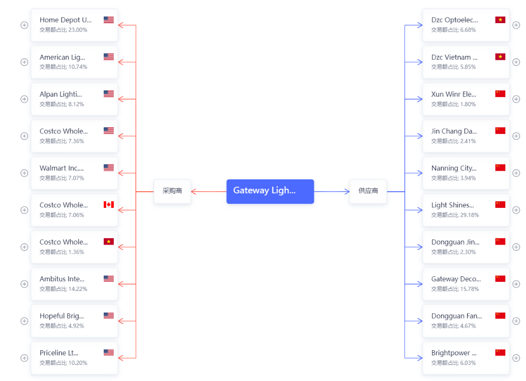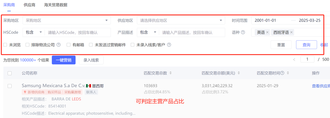 ②通过平台里的海关数据,可以找到有LED产品采购记录的海外买家,同时也能找到国内同行的合作客户。