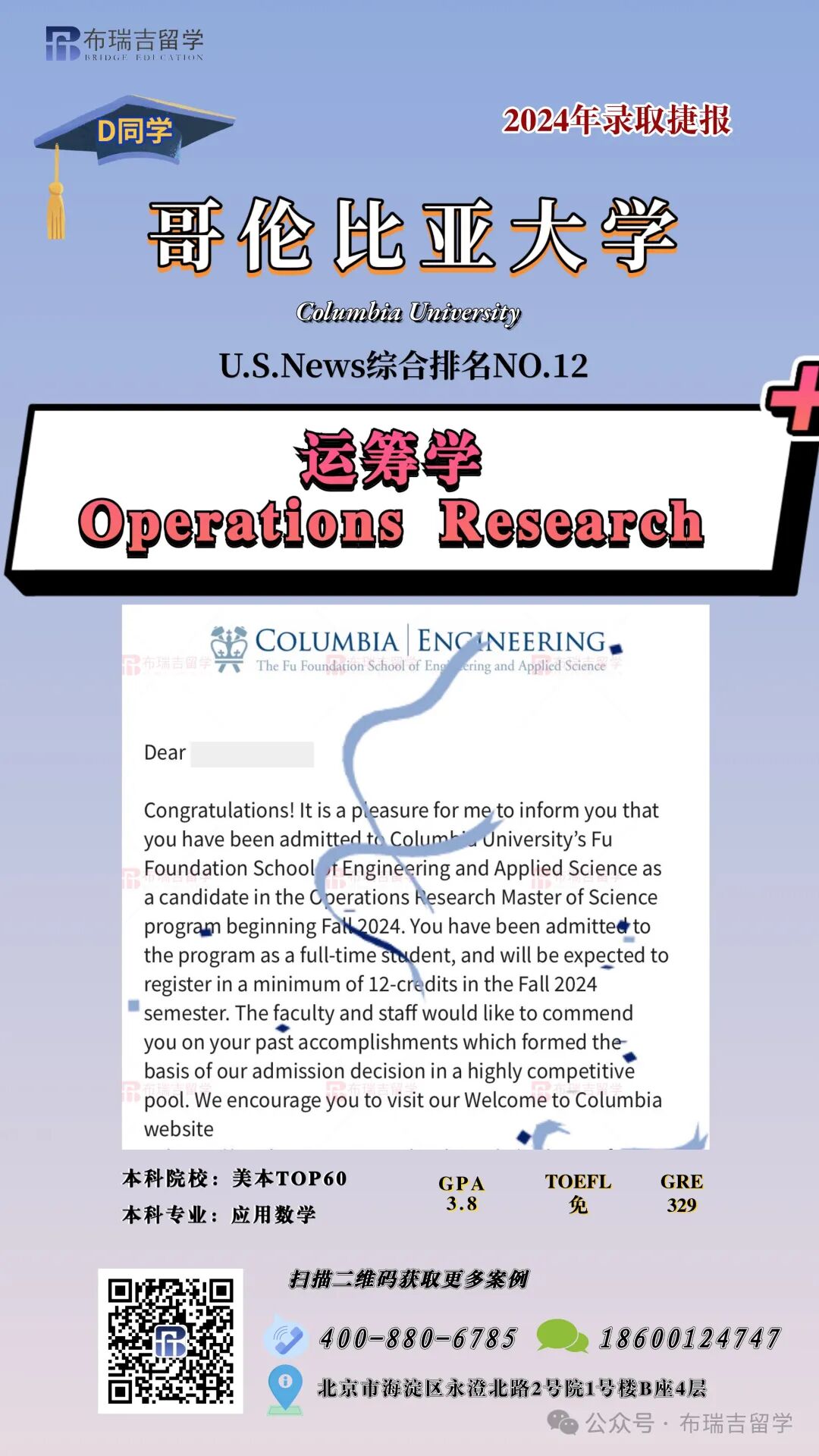 在布瑞吉的指导下,众多学生成功斩获工业工程和运筹学顶尖项目的录取:
