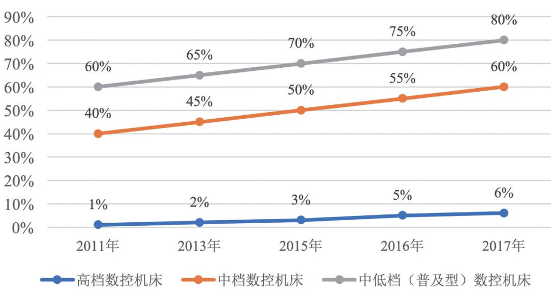 数控机床产品需求结构矛盾升级,高档产品国产化率低