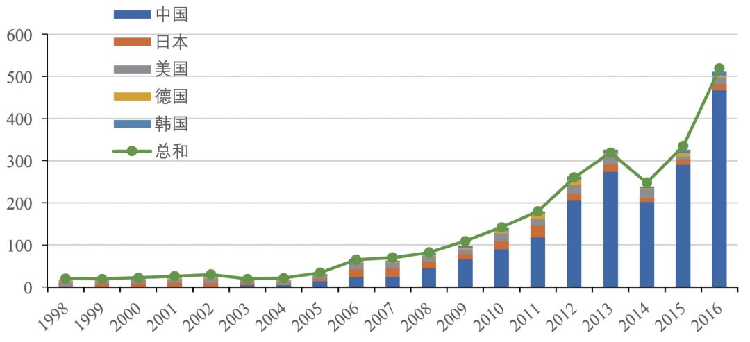 多轴联动技术相关专利最早出现在美国和德国,随后日本的相关技术也开始萌芽,三国在多轴联动技术相关专利数量上并驾齐驱。中国从1992 年开始申请了第一篇多轴联动技术的相关专利,标志着中国开始进入多轴数控机床研究领域。