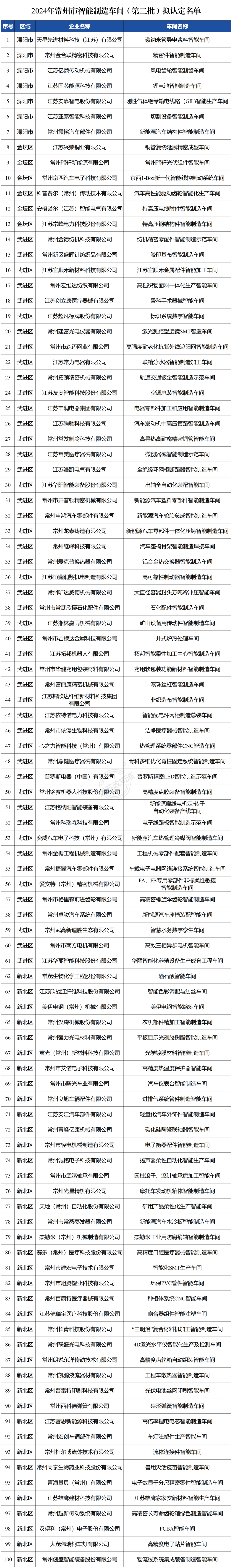 关于2024年常州市智能制造车间(第二批)拟认定名单的公示