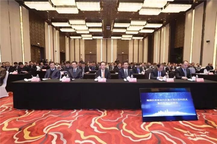 考察结束后,考察团一行赶赴美利亚酒店参加“槐荫区西客站片区重点项目签约仪式暨招商项目说明会”,会上槐荫区政府、济南城市建设集团与相关企业集中签订了12个西客站片区项目,总投资额高达235亿元。项目涵盖商业、酒店、新能源、双创孵化器等。这些项目的签约,标志着槐荫区在推动新旧动能转换、产业结构战略升级上又迈出了坚实一步。