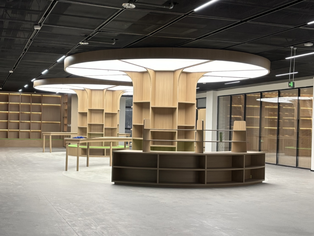 一楼设置会议室、党员活动室、静音书吧等,能为企业团队提供深度思考与决策支持环境。二楼搭建全景路演厅,能一键切换发布会、培训营等功能场景,后续还将引入智能洗衣房、健身房、桌球室与开放式茶等,打造24小时活力社区。