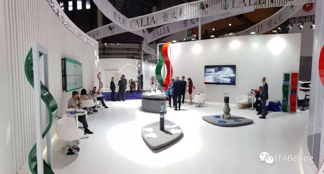 意大利展馆面积1200平方米,共66家成功企业参展。馆内展现了包括意大利中小企业在内的,意大利公司所制造科技产品的高质量,可靠性,安全性和可持续发展性。通过对解决根本问题的阐释,为中国的第13个五年计划提供思路,具体涉及社会福利、土地资源重整利用、产品的安全、环境可持续性、公民健康等问题。
